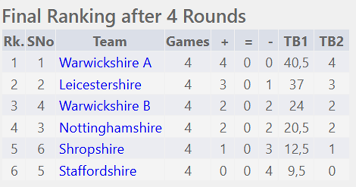 At the end of the day Leicestershire finished in 2nd place, qualifying for the national finals in March for the first time in 8 years! There we many excellent performances over the day, and following children won all their games: